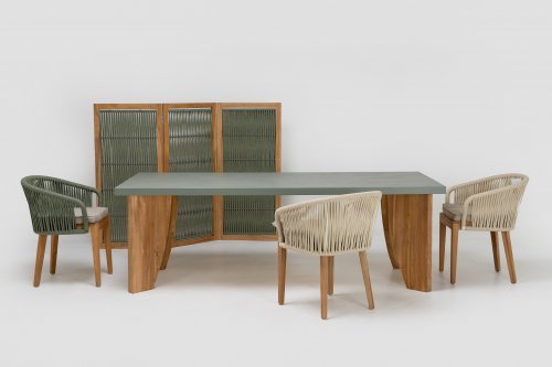 Коллекция Dakota представляет собой идеальное сочетание традиций и инноваций, а также природы и техники. Кресло серии Dakota изготовлено из прочной тиковой структуры и ручного плетения высочайшего качества. Каркас спинки выполнен из алюминия с эпоксидным порошковым покрытием. Подушка на сиденье обеспечивает максимальный комфорт и удобство, а структура из тика и алюминия – прочность и надежность. Оно отлично впишется в пространства сферы Contract и превосходно подойдет для обустройства открытых площадок частных проектов.
