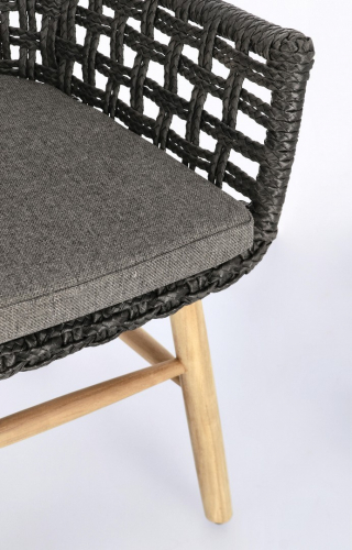Wilson – это кресло с высококачественным плетением и деревянными ножками. Оно станет прекрасным дополнением для разнообразных открытых пространств различных проектов. Великолепная комбинация плетения из синтетического волокна Viro, которое обвивается вокруг алюминиевого каркаса, и ножек из тика, славящегося своей прочностью и надежностью, позволяющей использовать мебель из этой древесины на свежем воздухе, придает модели гостеприимный и домашний характер.