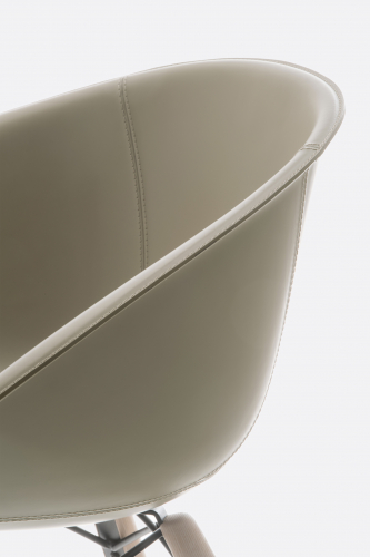 Gliss Wood – это кресло с корпусом, обтянутым натуральной кожей. Изделие имеет уютную и эргономичную форму, вдохновленную культовыми креслами пятидесятых. Коллекция отличается комфортом и функциональностью, благодаря изогнутым подлокотникам, обеспечивающим чувство защищенности. Каркас с 4-мя ножками из дерева и металлической опорой, придает индивидуальность и обеспечивают долгий срок службы.