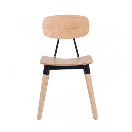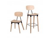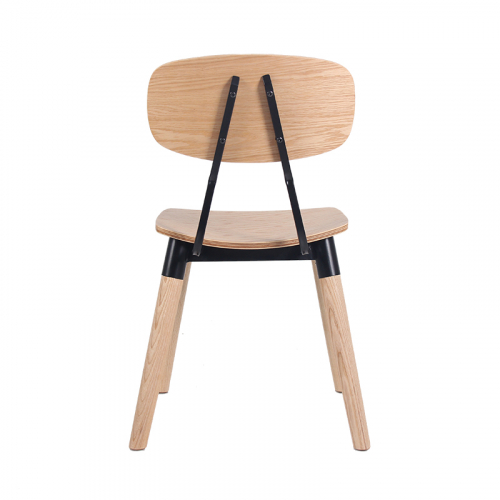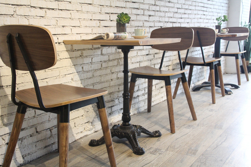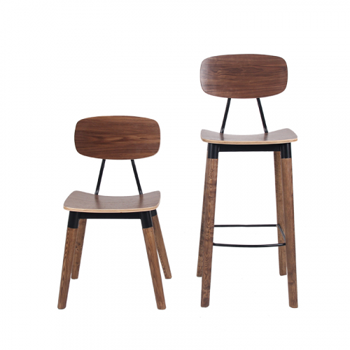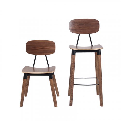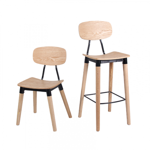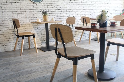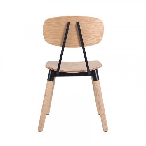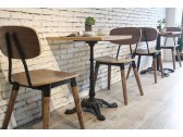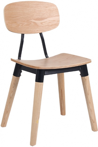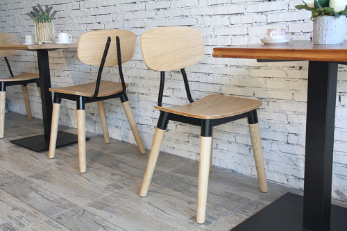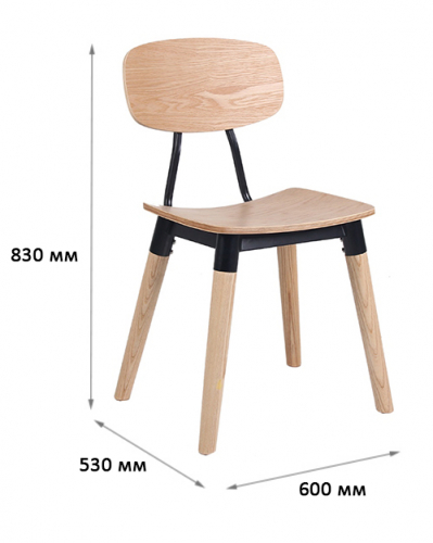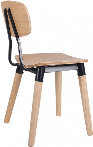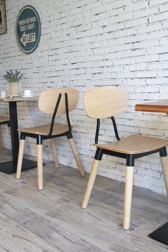 Универсальный деревянный стул с фанерным сиденьем и металлическими элементами органично впишется в обстановку баров, кафе и летних террас в загородных домах и общественных заведениях.