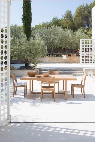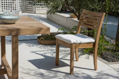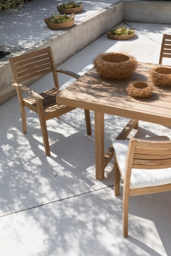Тиковое дерево - это превосходный материал, известный во всем мире красотой текстуры поверхности и превосходными физическими характеристиками. Это прочная, водостойкая древесина, устойчивая к соленым средам и разным погодным условиям. Для производства мебели Unopiù использует только самый доступный и прочный тик из индонезийских лесов, и только тот, который обладает высочайшим качеством - из центра ствола. Качество и экологическая устойчивость: тик Unopiù поступает только с сертифицированных, гарантированных и контролируемых государственных плантаций, где каждый спил дерева заменяется новым.