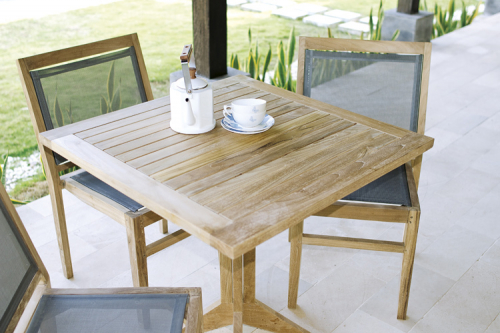 Стул Macao из массива тика предназначен для комфортной и уютной атмосферы, спинка имеет квадратный дизайн и становится тоньше к вершине. Батилиновая ткань фиксируется фитингами из алюминия и нержавеющей стали. Модель подходит для использования в интерьере и на открытых пространствах.