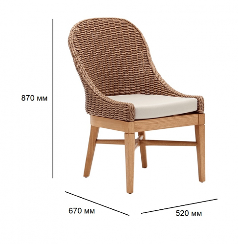 Уличный стул Ralf с деревянным каркасом, спинкой из плотного плетения искусственного ротанга и подушкой из погодостойкой ткани идеально подходит для облагораживания открытых пространств ресторанов, кафе и отелей, добавляя элегантности и комфорта в экстерьер заведения. В домашнем использовании такой стул станет стильным и удобным элементом мебели на террасе или в саду, где он создаст уютное место для обеда и проведения времени с семьей и друзьями. Благодаря качественным материалам и устойчивости к погодным условиям, этот стул обеспечит долговечное и комфортное использование как в коммерческих, так и частных пространствах.