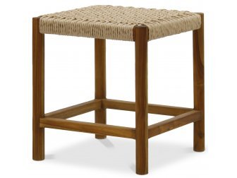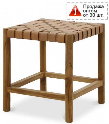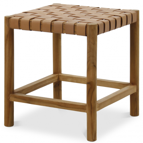 Ручная работа из массива тикового дерева и плетеной натуральной кожи. Этот табурет найдет свое естественное место в вашем доме в качестве подставки для ног, детского сиденья, журнального столика или подставки для растений.