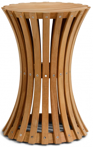 Изогнутые под действием тепла планки придают изделиям коллекции Swing извилистый вид и особую эргономичность, таким как лежак и практичные многофункциональные столики-табуреты.