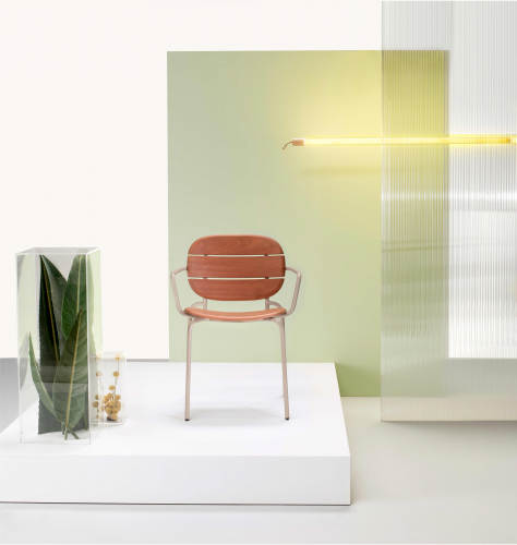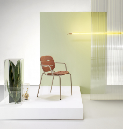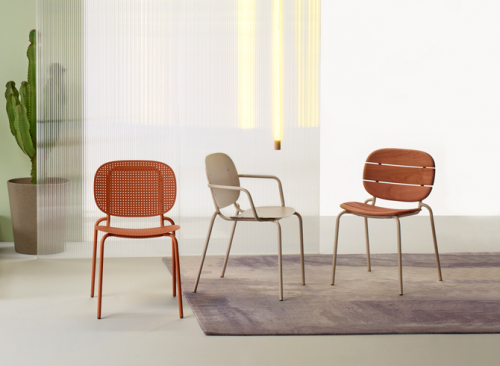 Si-Si - коллекция стульев и кресел, имеющих эклектичное, хамелеоноподобное сиденье с эстетической прочностью, чтобы интерпретировать хрупкий баланс между внутренним и наружным. В коллекцию входят 4 базовые модели с характерными деталями: Si-Si (гладкая текстура), Si-Si Dots (перфорированная текстура), Si-Si Barcode (текстура с вертикальными разрезами) и Si-Si Wood (сиденье и спинка с деревянными планками). Стулья штабелируются по 6 шт. и подходят для использования в помещении и на открытом воздухе.