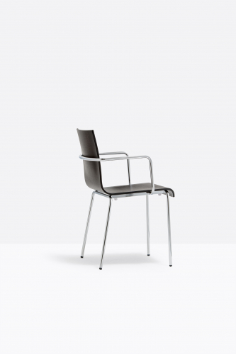 Большие размеры спинки и сиденья в сочетании с широким выбором вариантов отделки отличают Kuadra XL и делают его еще более универсальным и удобным. Культовый продукт, характеризующийся изогнутым профилем спинки, который обеспечивает эргономичность и функциональность. Штабелируемое кресло с сиденьем и спинкой из шпонированной фанеры на четырех круглых ножках является великолепным решением для обустройства коммерческих и домашних интерьеров.