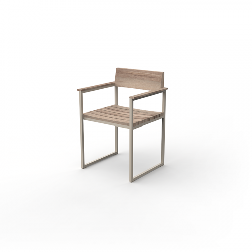 Коллекция Vineyard представляет собой коллекцию садовой мебели из алюминия и дерева в деревенском и теплом стиле. Разработанное Рамоном Эстеве, чтобы предложить минималистичное решение для открытых пространств, кресло имеет прочную и долговечную конструкцию. Спинка, сиденье и подлокотники из тикового дерева обрамлены прочным алюминием, что придает им уникальную эстетику.
