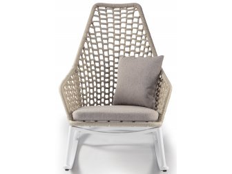 Элегантное кресло-качалка Kos для отдыха на террасе или в саду. Каркас этого кресла выполнен из окрашенного в белый цвет алюминия и дополнена красивым переплетением из полиэстерового каната, которая создает спинку и подлокотники. На сиденье подушка идеальной формы, выполненная из быстросохнущего поролона с чехлом из олефина, идеально подходящая для наружного применения. Кресло-качалка является отличным решением для обустройства открытых пространств частных домомй, а также для клубов или отелей, где его гости будут сидеть и качаться во время ожидания или отдыха.