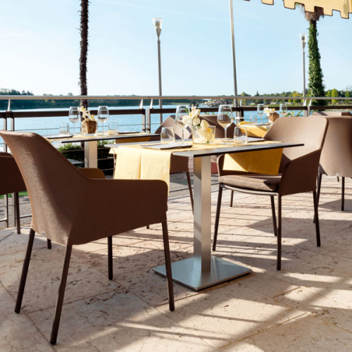 Устойчивый алюминиевый каркас кресла Giselle дополняет мягкая обивка из пластифицированной ПВХ-ткани и удобная подушка на сиденье. Мягкие кресла Giselle станут украшением террасы, столовой или кухни в частном доме, прекрасно дополнят обеденную зону на открытом воздухе, идеально подойдут для летней площадки кафе или ресторана.