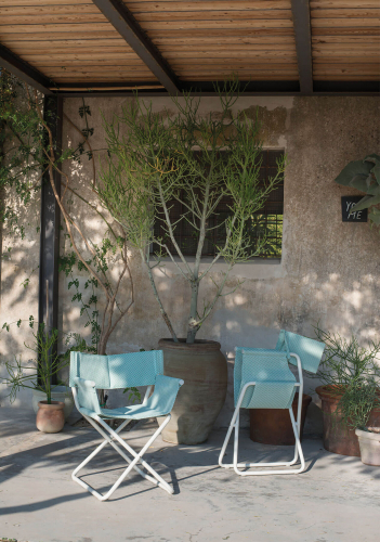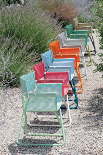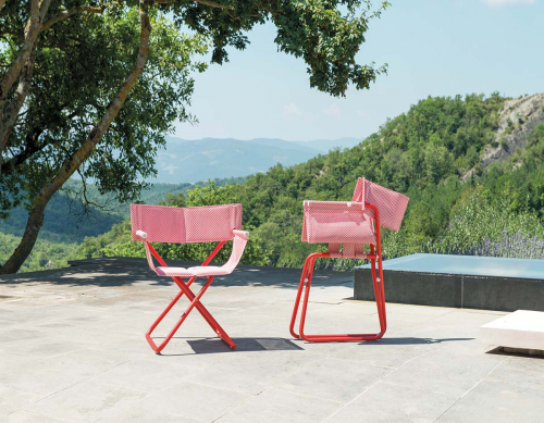 В коллекции также есть практичный элемент поддержки, который также может функционировать как подставка для ног, доступного в том же диапазоне цветов, что и шезлонг. Маленькое складное кресло и удобный лежак дополняют эту практичную и забавную коллекцию с запоминающимся дизайном, дополненным энергичным цветом.