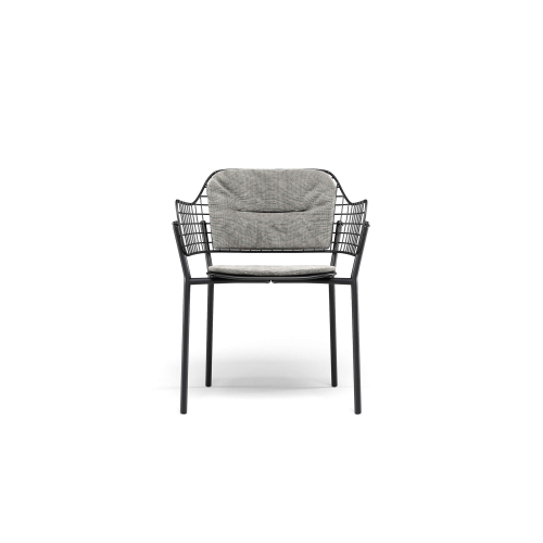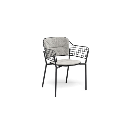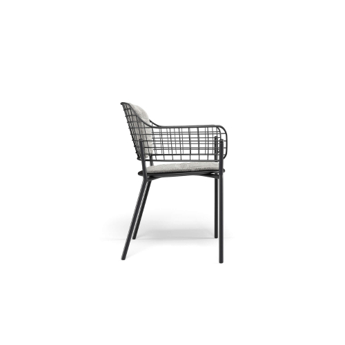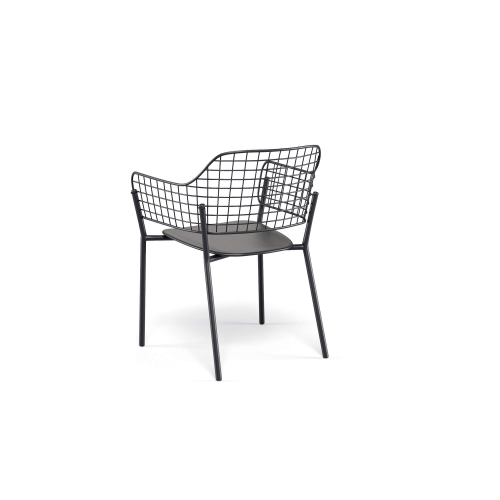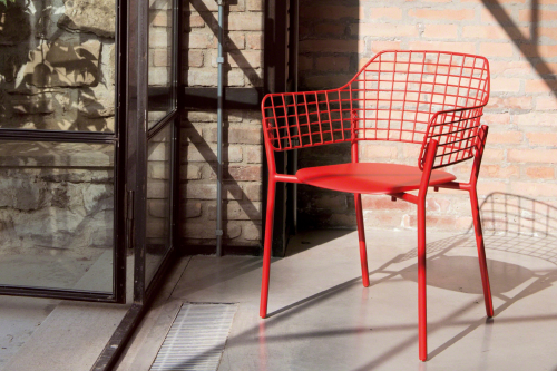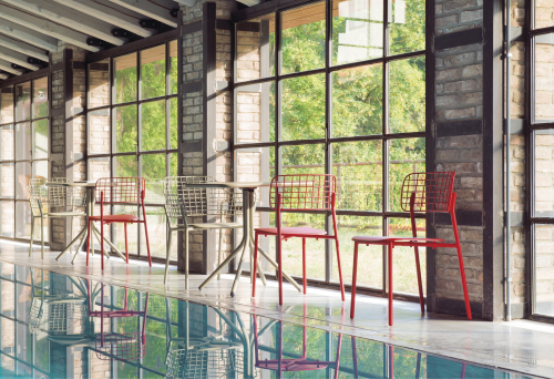 Необычная спинка из нержавеющей стали прикреплена к алюминиевому сиденью и поставляется в различных сложных цветовых сочетаниях. Журнальные столики со столешницей из фиброцемента вместе с удобным креслом для отдыха элегантно дополняют зоны отдыха в любых пространствах.
