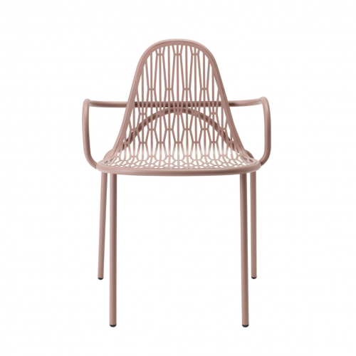 Malvasia - это коллекция уличных стульев и кресел, металлическая текстура которых создает элегантную и строгую игру света и тени. Несмотря на кажущуюся простоту, их конструкция представляет собой настоящую производственную задачу: извлечь спинку и сиденье из единой перфорированной и каландрированной детали, а затем приварить их почти невидимым способом к трубчатой раме. Особо сложная обработка, которая приближает металл к пределу его гибкости и смягчает его непроницаемую холодность. Напоминающая основу и уток ткани, а также игру теней на листве дерева, Malvasia - это сиденье, которое оживит любое открытое пространство, будь то патио, терраса или сад. Ножки, характеризующиеся двойным изгибом, придают мебели поэтическую легкость, минималистичный профиль которой дополняют подлокотники и мягкие подушки.