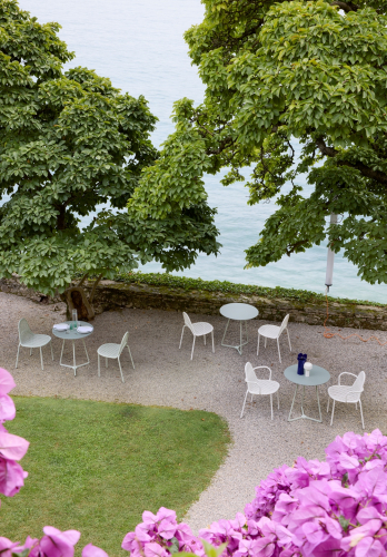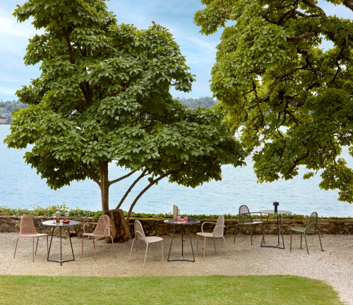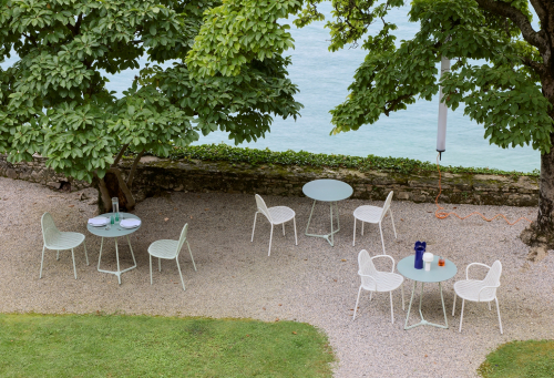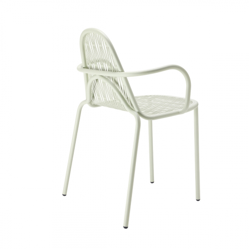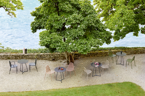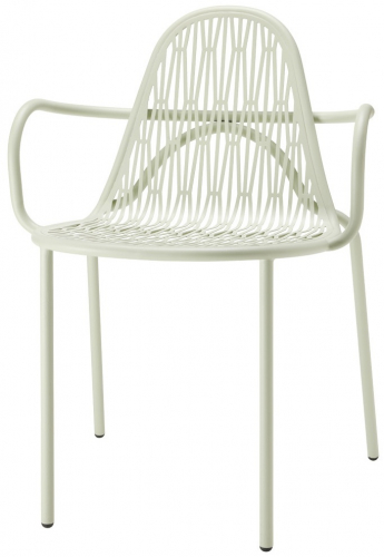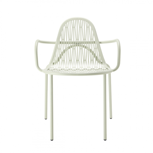 Malvasia - это коллекция уличных стульев и кресел, металлическая текстура которых создает элегантную и строгую игру света и тени. Несмотря на кажущуюся простоту, их конструкция представляет собой настоящую производственную задачу: извлечь спинку и сиденье из единой перфорированной и каландрированной детали, а затем приварить их почти невидимым способом к трубчатой раме. Особо сложная обработка, которая приближает металл к пределу его гибкости и смягчает его непроницаемую холодность. Напоминающая основу и уток ткани, а также игру теней на листве дерева, Malvasia - это сиденье, которое оживит любое открытое пространство, будь то патио, терраса или сад. Ножки, характеризующиеся двойным изгибом, придают мебели поэтическую легкость, минималистичный профиль которой дополняют подлокотники и мягкие подушки.