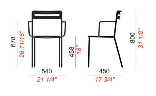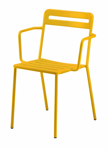 Металлическое кресло C1.2 имеет ту же раму и отделку, что и модель C1.1, а добавление двух удобных трубчатых металлических подлокотников делает его естественным развитием последней, обеспечивая повышенный комфорт и удобство переноски.