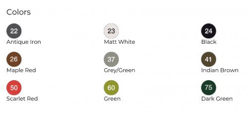 Материал: окрашенная сталь. Состав: железо и углеродный сплав с содержанием углерода менее 2%, обработанные, чтобы выдерживать воздействия окружающей среды, с помощью уникально антикоррозионной обработки EMU-Coat.
