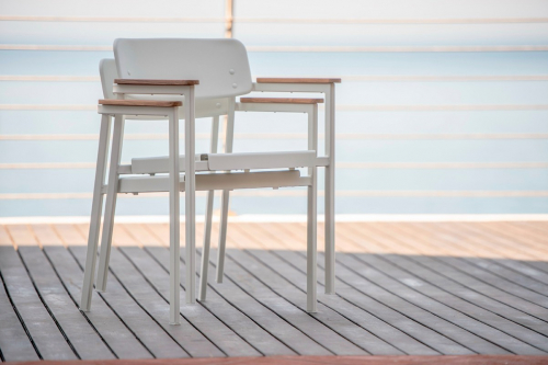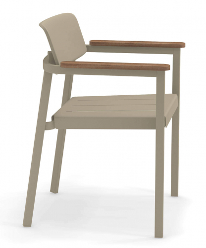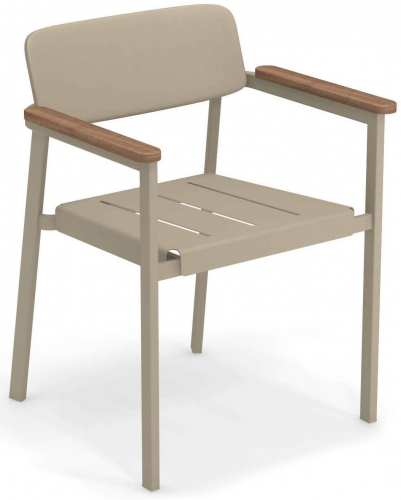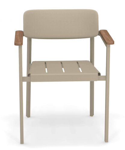 Материал подлокотников: тик. Тик - это твердая древесина с высоким содержанием масла, подходящая для наружного использования, без покраски. Если он не имеет никакой защитной обработки, поверхность превратится в серебристо-серый цвет, естественную защиту внутренней части дерева, которая считается неотъемлемой частью очарования тика. Тик, используемый для продуктов EMU, сертифицирован FSC®.