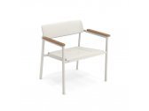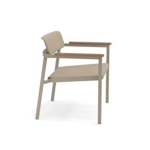 Материал подлокотников: тик. Тик - это твердая древесина с высоким содержанием масла, подходящая для наружного использования, без покраски. Если он не имеет никакой защитной обработки, поверхность превратится в серебристо-серый цвет, естественную защиту внутренней части дерева, которая считается неотъемлемой частью очарования тика. Тик, используемый для продуктов EMU, сертифицирован FSC®.