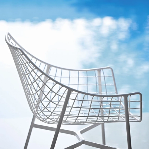 Дизайн обеденного кресла Summer Set отличается приветливой, изящно изогнутой формой. Каркас, выполненный из металлической сетки, задает графичный ритм, который может элегантно подхватываться мягкими подушками. Благодаря своему свежему и динамичному силуэту, это кресло станет идеальным выбором для модного заведения или ресторана с видом на море, даря своим гостям моменты истинного релакса.