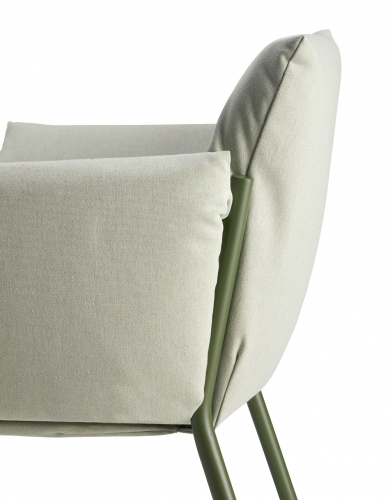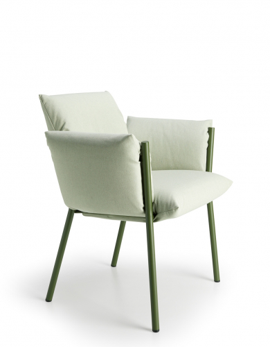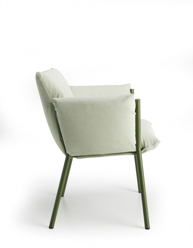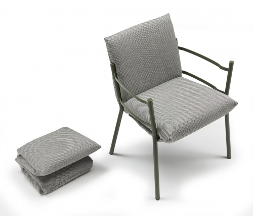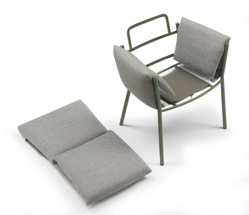 В кресле Brezza каркас и подушки взаимодействуют беспрецедентным образом, сочетая в себе прочность, устойчивость и врожденную элегантность в проекте, рожденном с мыслью о комфорте на открытом воздухе. Мягкие подушки проникают в конструкцию и очень легко фиксируются путем блокировки друг друга. Мягкая и объемная набивка оставляет видимыми металлические ножки круглого сечения, которые придают креслу прочность и узнаваемость. В Brezza забота об экологии заключается в выборе материалов: ткани из переработанного материала, без использования клея, штабелируемые рамы минимального размера для транспортировки с последующим сокращением выбросов CO2.