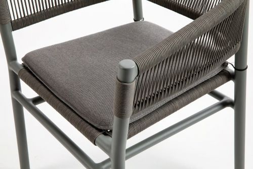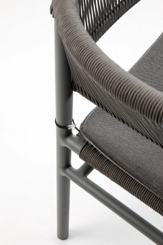 Кресло Kilt штабелируется и отвечает всем требованиям комфорта: использование плотного переплетения веревки для формирования спинки, перетекающей в подлокотники, обеспечивает как оптимальный комфорт, так и устойчивость к погодным условиям.