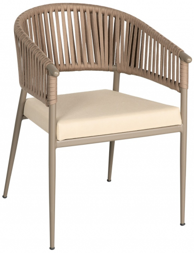 Мягкое кресло на металлокаркасе Glory со спинкой из плетения роуп - это стильное и функциональное решение для коммерческих пространств, создающее гармоничное сочетание эстетики и комфорта. Плетение из веревки, выполненное из прочного и устойчивого к воздействию внешней среды материала, обладает высокой влагостойкостью и легко очищается, что делает кресло идеальным для ресторанов и кафе с интенсивным движением. Металлокаркас обеспечивает надежную поддержку и долговечность, а мягкая обивка сиденья предлагает невероятный комфорт для посетителей. Благодаря своему современному дизайну и удобству, это кресло станет не только приятным элементом интерьера, но и привлекательным местом для отдыха, способствуя созданию уютной атмосферы в любом коммерческом пространстве.