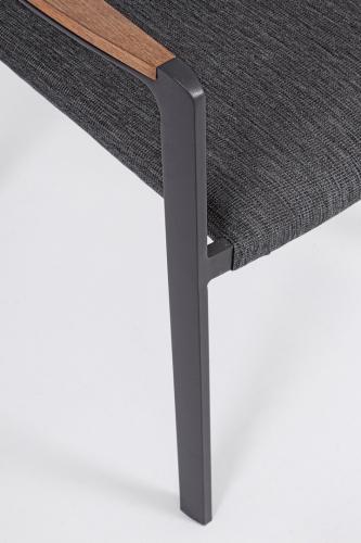 Кресло Jalisco с мягкой обивкой отличается характерным акцентом в виде тиковых вставок на подлокотниках. Комфорт и удобство обеспечивает мягкий корпус из высококачественных материалов, а надежность и устойчивость конструкции – алюминиевый каркас. Модель будет отличным вариантом для обустройств обеденных зон и любых других мест.