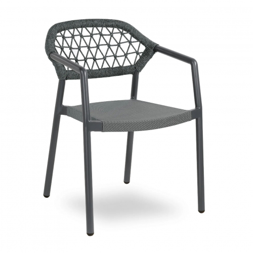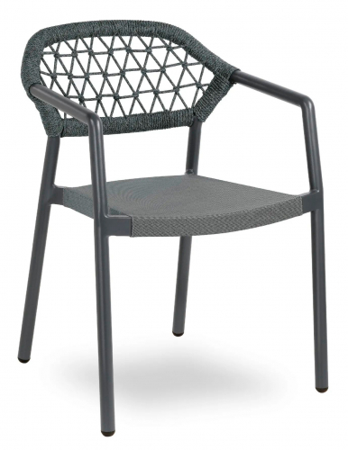 Металлическое кресло Gaudi идеально подойдет для обустройства обеденных зон на открытом воздухе. Его отличительными чертами является изящное плетение спинки канатом роуп ручной работы и тканевое сиденье. Каркас кресла изготовлен из прочного и легкого алюминия, который обеспечивает долгий срок службы модели. Кресло Gaudi, обладающее красивым и оригинальным дизайном, отлично впишется в открытые площадки летних кафе или на террасы престижных ресторанов.