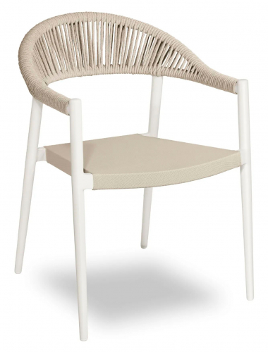 Металлическое кресло Praga идеально подойдет для обустройства обеденных зон на открытом воздухе. Его отличительными чертами является изящное плетение спинки канатом роуп ручной работы и тканевое сиденье. Каркас кресла изготовлен из прочного и легкого алюминия, который обеспечивает долгий срок службы модели. Кресло Praga, обладающее красивым и оригинальным дизайном, отлично впишется в открытые площадки летних кафе или на террасы престижных ресторанов.