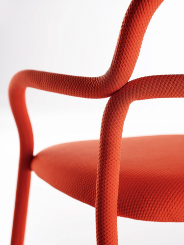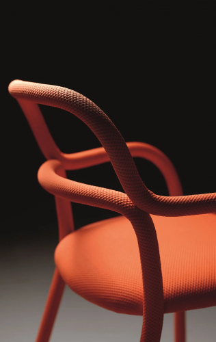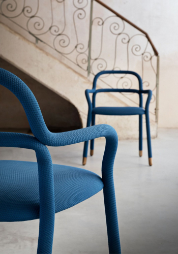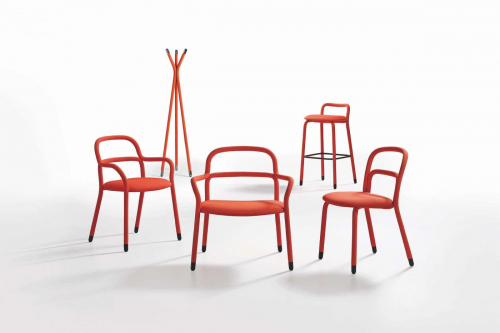 Визуальная непрерывность и почти магическая связь между различными элементами - вот что характеризует коллекцию Pippi. Металлическая конструкция состоит из одной трубы с мягкими и извилистыми изгибами. Как пара длинных чулок, ткань одевает конструкцию, удивительным образом скрывая все застежки в местах соприкосновения. Линейность продукта также выражается в использовании одного материала для обивки продукта, чтобы сделать сиденье еще более мягким и уютным.
