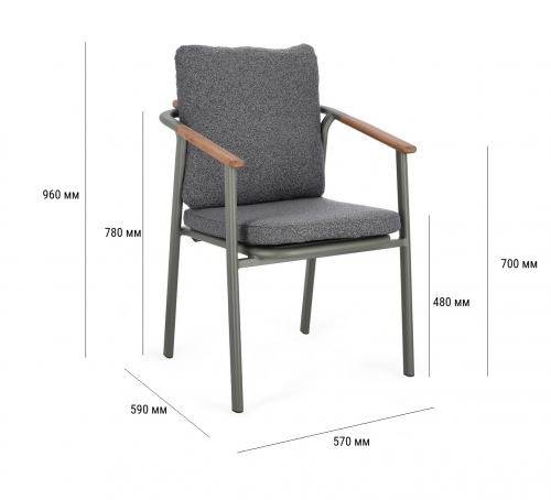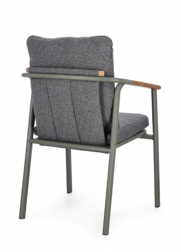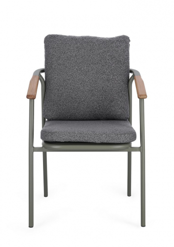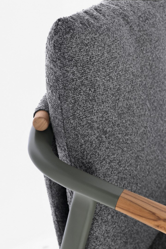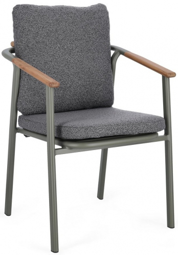 Leonida - элегантное кресло, в котором современный минимализм встречается с природным теплом. Основой модели служит прочный каркас из алюминия с долговечным порошковым покрытием, дополненный изысканными вставками из натурального тикового дерева на подлокотниках и спинке. Особую текстуру и уют интерьеру придает обивка из инновационной водоотталкивающей олефиновой ткани с актуальным эффектом букле. Съемные мягкие подушки, выполненные из того же материала, обеспечивают максимальный комфорт для гостей и простоту в обслуживании.