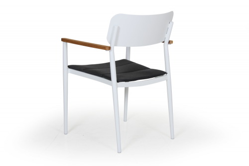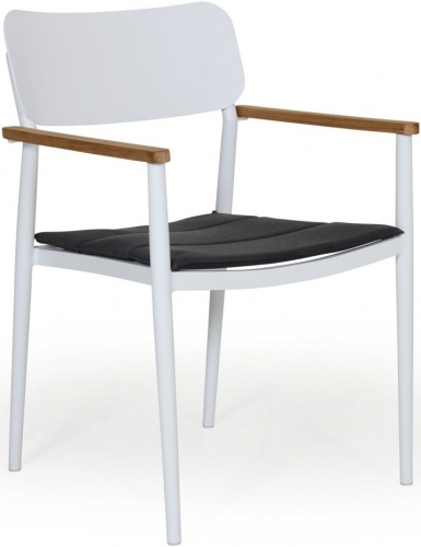 Обеденное кресло Domingo выполнено в стильном дизайне с интересными деталями, такими как подлокотники из тикового дерева, конические ножки и мягкая подушка на сиденье. Кресло подойдет для обстановки стильных интерьеров, террас или летних площадок.