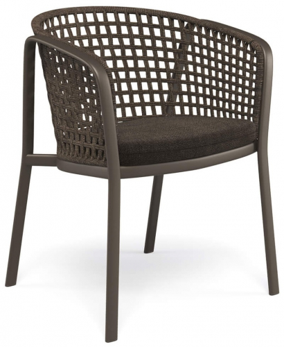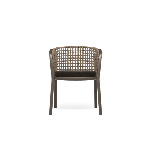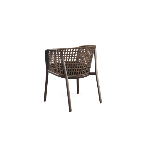 Каркас кресла выполнен из трубчатого алюминия. Сиденье изготовлено из листа алюминиевого сплава, который вытягивается для придания ровной формы, а затем крепится к алюминиевой раме с помощью структурной сварки, выполненной с использованием технологии TIG, которая обеспечивает особое сопротивление, а также лучший стандарт с точки зрения прочности и эстетики. Структура стальной спинки поддерживает декоративные узоры, предлагаемые в различных материалах. Все выбранные материалы гарантируют длительную стойкость и стабильность цвета.