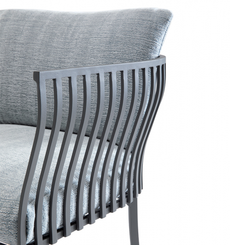 Элегантность городской мебели конца девятнадцатого века вновь оживает в коллекции Venexia, сочетающей вневременной шарм и современную функциональность. Алюминиевая конструкция, визуально напоминающая старинные перила, характеризует диваны и кресла, обволакивая щедрые и округлые формы сиденья ощущением легкости и прочности одновременно. Зона лаунж уютная и удобная, низкие кофейные столики выгодно сочетаются с неожиданным сочетанием камня и алюминия. Теплые оттенки тканей для подушек создают связь с Землей.