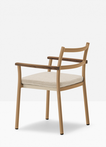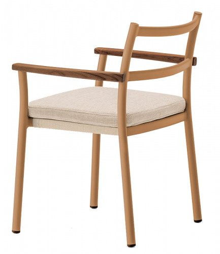 Уличное кресло Guinea с культовым дизайном, воплощающим концепцию легкости и прозрачности, станет отличным решением для обстановки открытых площадок. Просторный алюминиевый каркас сочетается с сиденьем из водонепроницаемого текстилена, на котором лежит мягкая съемная подушка. Спинка из алюминиевых перекладин может быть обита тканью и сконструирована таким образом, чтобы еще больше повысить комфорт. Отличительной чертой являются подлокотники из тикового дерева, которые отлично гармонируют с каркасом, создавая яркую тактильную деталь. Подлокотники, сиденье и спинка собраны механически, что облегчает их разборку для утилизации или замены компонентов.