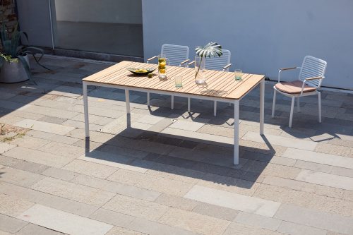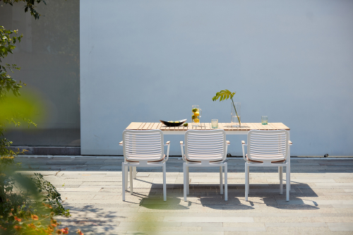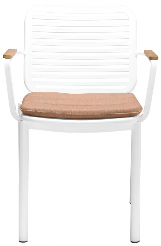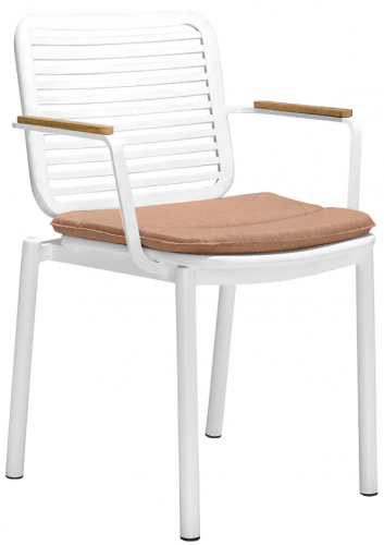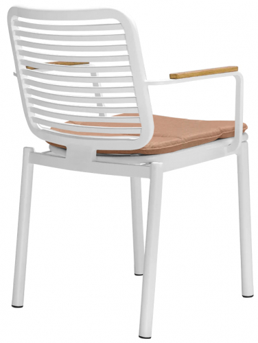 Прочное кресло Armona для обеденной зоны на открытом воздухе создано, чтобы выдержать испытание временем. Его рама изготовлена из алюминия с порошковым покрытием, что обеспечивает долговечность. Кресло оснащено элегантными подлокотниками из тикового дерева и съемной подушкой, что делает его невосприимчивым к различным погодным условиям.