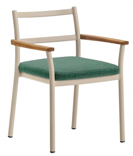Уличное кресло Guinea с культовым дизайном, воплощающим концепцию легкости и прозрачности, станет отличным решением для обстановки открытых площадок. Просторный алюминиевый каркас сочетается с сиденьем из водонепроницаемого текстилена, на котором лежит мягкая съемная подушка. Спинка из алюминиевых перекладин может быть обита тканью и сконструирована таким образом, чтобы еще больше повысить комфорт. Отличительной чертой являются подлокотники из тикового дерева, которые отлично гармонируют с каркасом, создавая яркую тактильную деталь. Подлокотники, сиденье и спинка собраны механически, что облегчает их разборку для утилизации или замены компонентов.