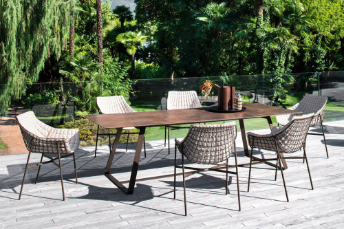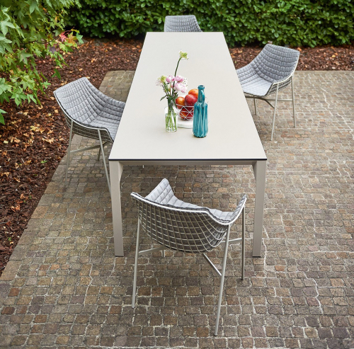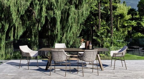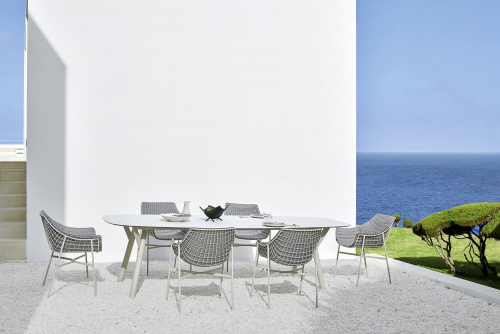 Дизайн обеденного кресла Summer Set отличается приветливой, изящно изогнутой формой. Каркас, выполненный из металлической сетки, задает графичный ритм, который может элегантно подхватываться мягкими подушками. Благодаря своему свежему и динамичному силуэту, это кресло станет идеальным выбором для модного заведения или ресторана с видом на море, даря своим гостям моменты истинного релакса.