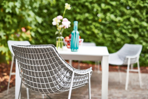 Сердцем и душой коллекции является искусная металлическая сетка - изящное переплетение проволоки, доступное в широкой палитре цветовых решений. Эта структура задает тон всей мебели, создавая эффект прозрачности и легкости, который так ценится в современном дизайне. Каждый элемент Summer Set призван стать не просто предметом меблировки, а акцентной деталью вашего личного пространства на открытом воздухе.
