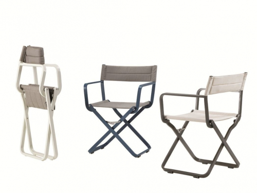 Всегда актуальное режиссерское кресло обретает в коллекции Studios свежую и современную интерпретацию, способную выступать в роли звездной фигуры на открытом пространстве.