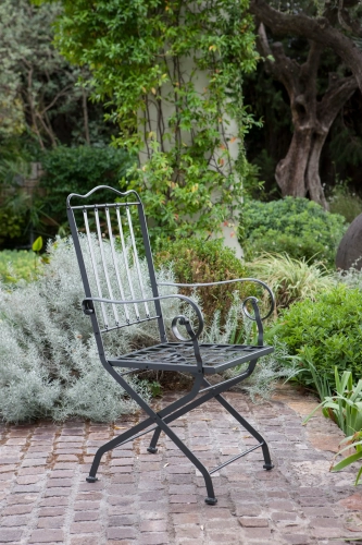 Каркас из железа выкован вручную. При гальванизации железо обрабатывается технически более совершенным типом окраски. Более экологичный, потому что он устраняет летучую часть краски, состоящую из загрязняющих растворителей и разбавителей, более эффективный, потому что он дает более прочное покрытие, а также создает более элегантную отделку.