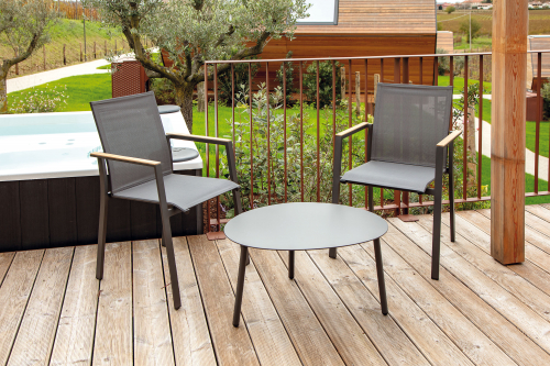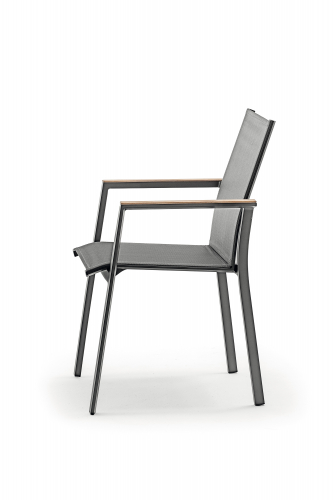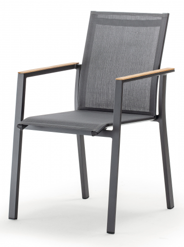 Штабелируемое кресло с алюминиевым каркасом и текстильным покрытием Alpha, которому нет равных в моменты отдыха и расслабления на открытом воздухе. Вставки из тика на подлокотниках добавляют шарма уличному креслу и пространству, в котором оно находится.