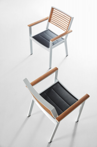 Коллекция York элегантно сочетает в себе металлический каркас с натуральной текстурой тика, которая органично интегрирована в верхнюю часть и отделку сидений. Вдохновленная современным архитектурным дизайном современных небоскребов, она передает ощущение компактности и прочности благодаря алюминиевой конструкции, прочно установленной на земле, и массивному присутствию тика, которое мы находим как на столешницах, так и на боковых панелях сидений, что создает дизайн, очень близкий к стилю помещения, делая эту коллекцию универсальной в своей среде. Кроме того, благодаря текстильным панелям, которые имеются как на сиденьях, так и на спинках, был достигнут больший комфорт, чем с помощью цельной металлической конструкции. York имеет широкий выбор столов, сидений и диванов.