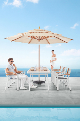 Коллекция York - это современный роскошный стиль жизни, разработанный командой дизайнеров Higold. Одна из первых, которая следует архитектурному стилю, перекликаясь с ДНК современного строительного дизайна. Лучшая коллекция мебели класса люкс в Higold. Самая главная особенность York - боковые панели из тика, которые в разложенном виде служат приставными столиками в мебели для лаунж зон.