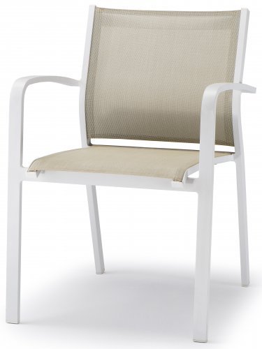 Современное кресло GS 936 с алюминиевым каркасом толщиной 1.5 мм и покрытием спинки и сиденья из текстилена. Кресла штабелируются, поэтому их можно легко хранить, например, в зимний сезон, когда они не используются. Характеристики материалов и практичность этой модели делают ее подходящей для наружных пространств, таких как терраса загороднгоо дома или кафе.