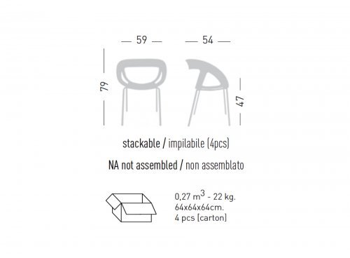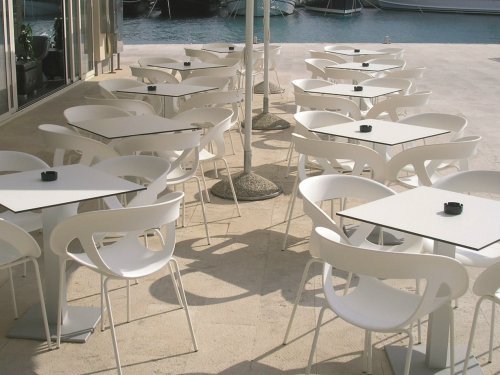 Корпус из технополимера, пригодный для использования внутри или снаружи помещения; деревянные, пластиковые или стальные каркасы делают Moema пригодными для различных целей. Модели с металлическим каркасом и каркасом из полимерной стали подходят как для внутреннего, так и для наружного использования, версия с металлической структурой может комплектоваться до 4 штук и имеет сертификат CATAS.