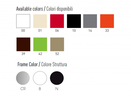Корпус из технополимера, пригодный для использования внутри или снаружи помещения; деревянные, пластиковые или стальные каркасы делают Moema пригодными для различных целей. Модели с металлическим каркасом и каркасом из полимерной стали подходят как для внутреннего, так и для наружного использования, версия с металлической структурой может комплектоваться до 4 штук и имеет сертификат CATAS.