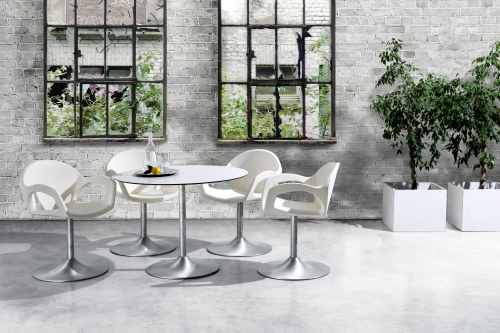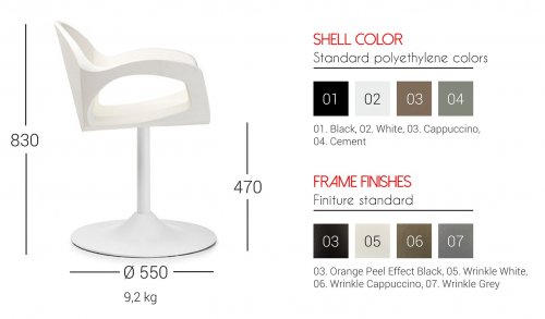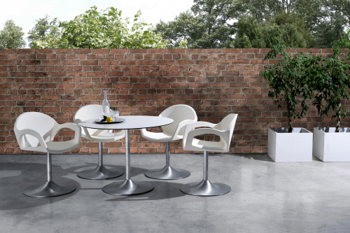 Уютное кресло Pepper Matrix, подходящее для использования на открытом воздухе, состоит из полиэтиленового корпуса и каркаса из окрашенной алюминиевой трубы и круглого основания, отлитого под давлением. Кресло имеет толстые эргономичные подлокотники.