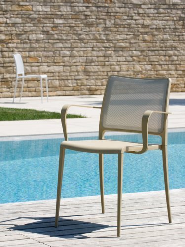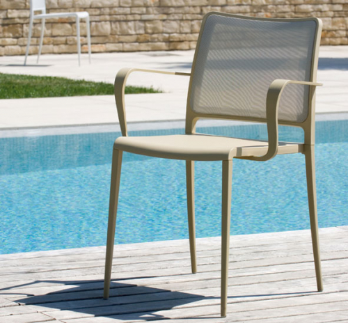 Mya - это коллекция, состоящая из барных и обеденных кресел с изысканным и филигранным дизайном. Кресла Mya Tecnica с алюминиевым каркасом, сиденьем из стеклопластика, текстильной спинкой и элегантными, эргономичными подлокотниками, которые крепятся к креслу под сиденьем, поражая плавностью своей формы. Подходят для использования под открытым небом, благодаря пластику, который не выгорает и не нагревается на солнце. Эти легкие кресла можно вставлять одно в другое, что экономит место при хранении и транспортировке.