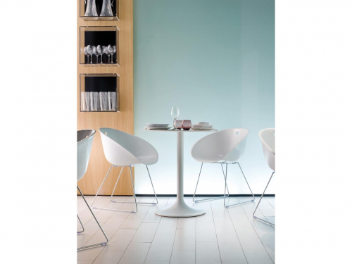 Коллекция Gliss имеет комфортную и эргономичную форму, которая черпает вдохновение из культовых кресел пятидесятых, и характеризуется отличительным элементом - отверстием в спинке. Сиденье имеет круглую форму c необозначенными границами подлокотников. Вы буквально погружаетесь в кресло. Ножки в виде полозьев добавляют устойчивости конструкции. Благодаря своему современному виду и материалам кресло Gliss станет заметным украшением для различных интерьеров.